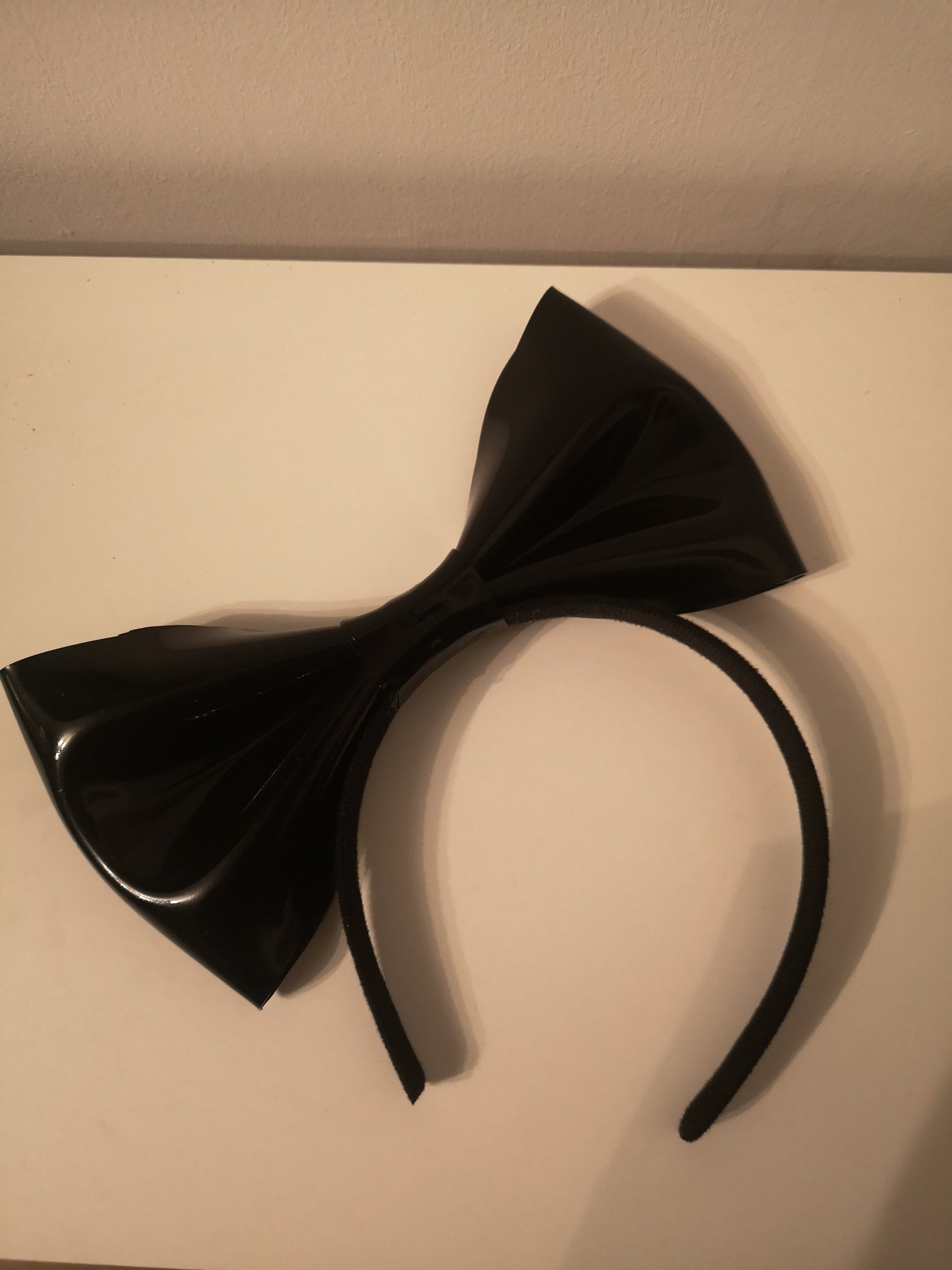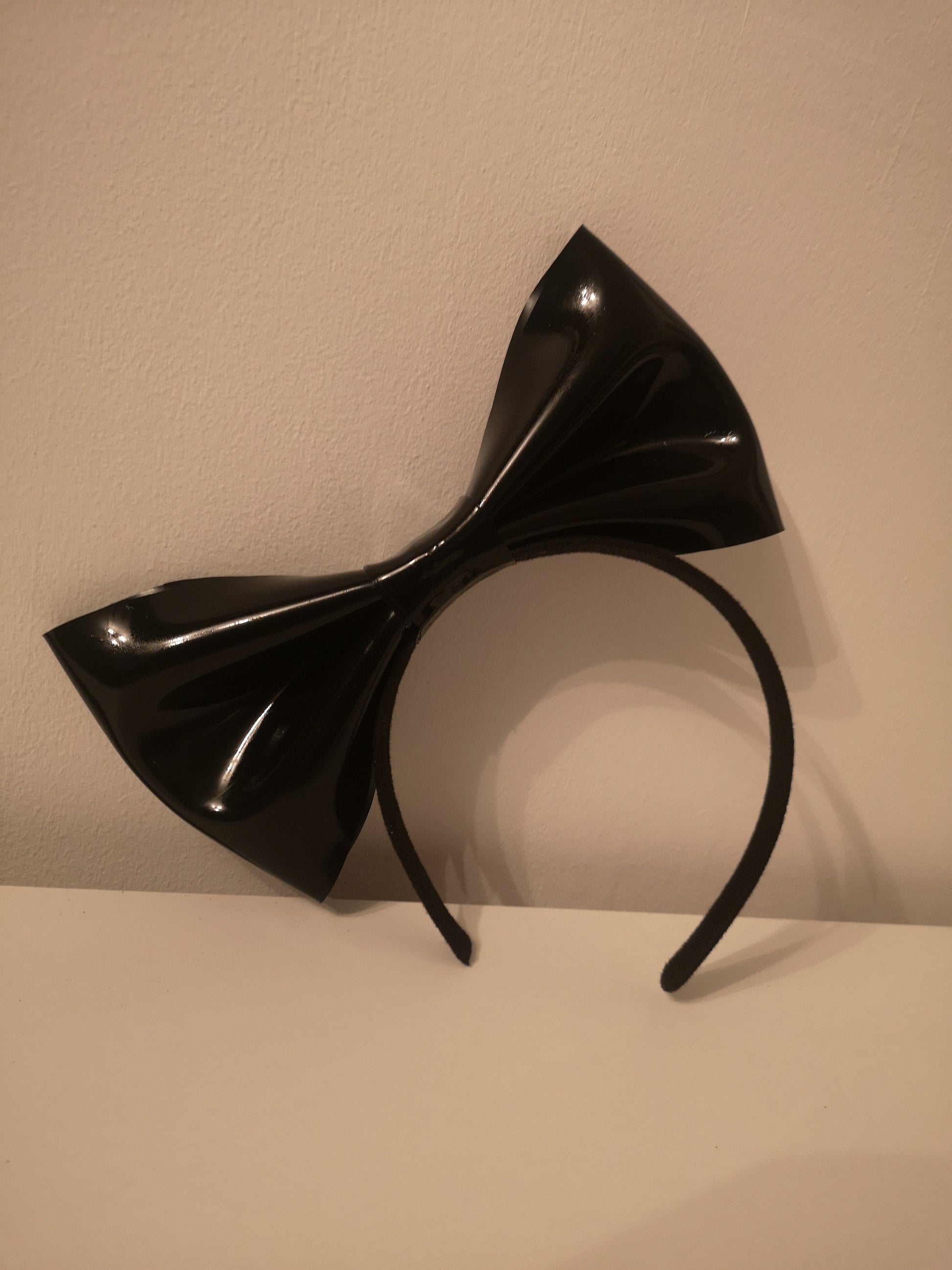 Sturdy 1.05mm black latex bow on black cloth headband.