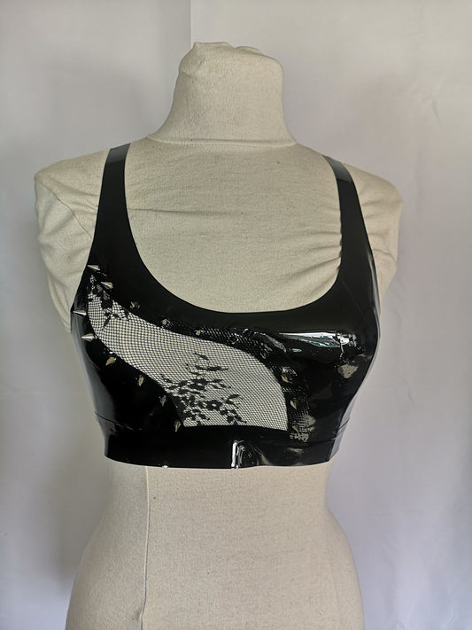 Black Latex Princess Dress with Spiked Shoulder Detail